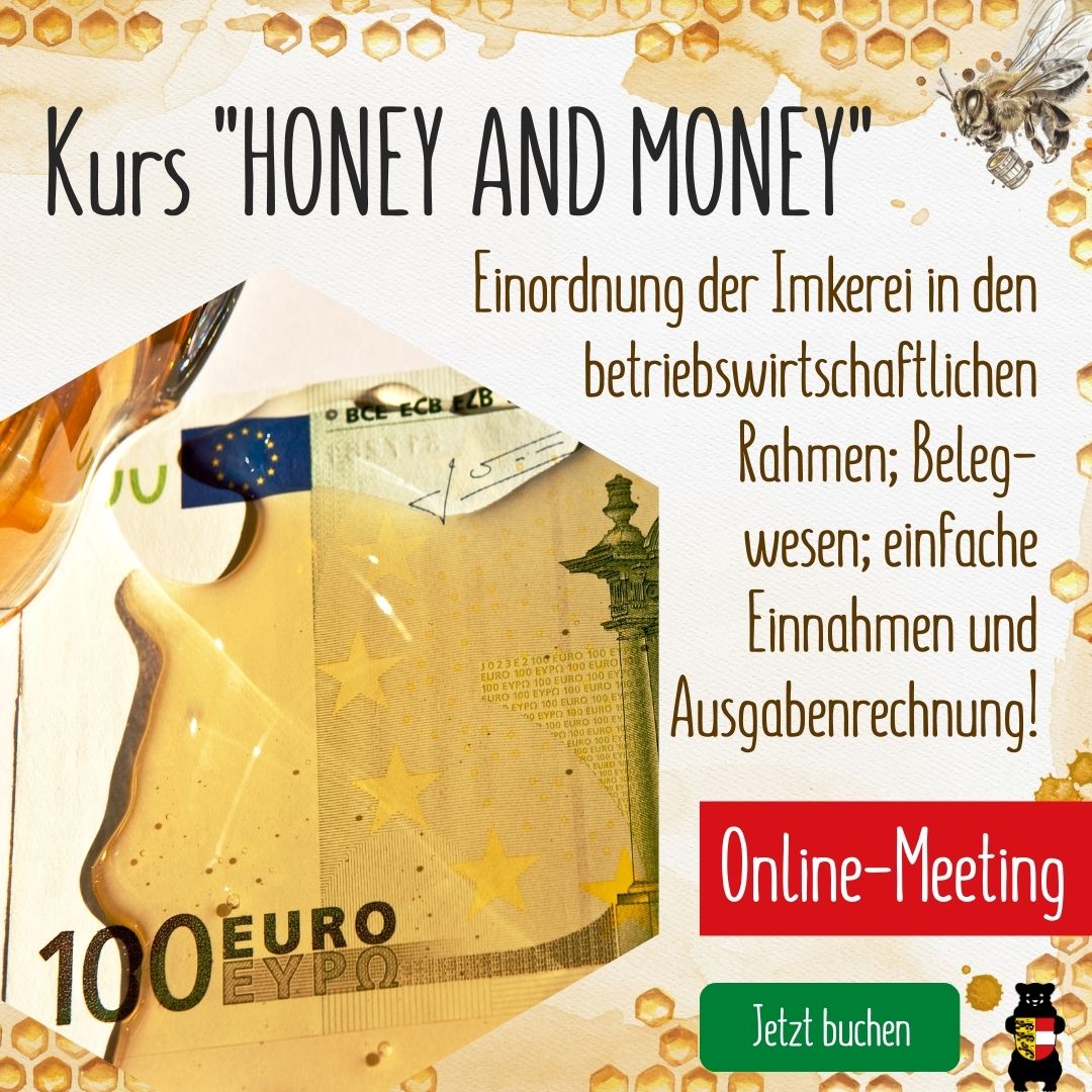 Kursinhalt: Einordnung der Imkerei in den betriebswirtschaftlichen Rahmen (Steuern, Versicherung, Meldepflichten; Belegwesen und Aufzeichnungen; Die einfache Einnahmen – Ausgabenrechnung
